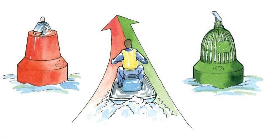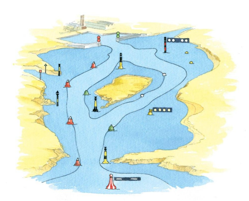 An image from RYA BN&S showing typical usage of buoys in a harbour.