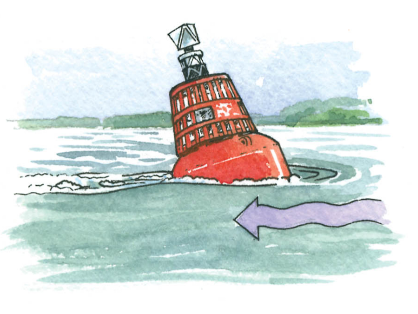Another RYA image showing one way of how to tell the direction of tide by looking at a buoy.